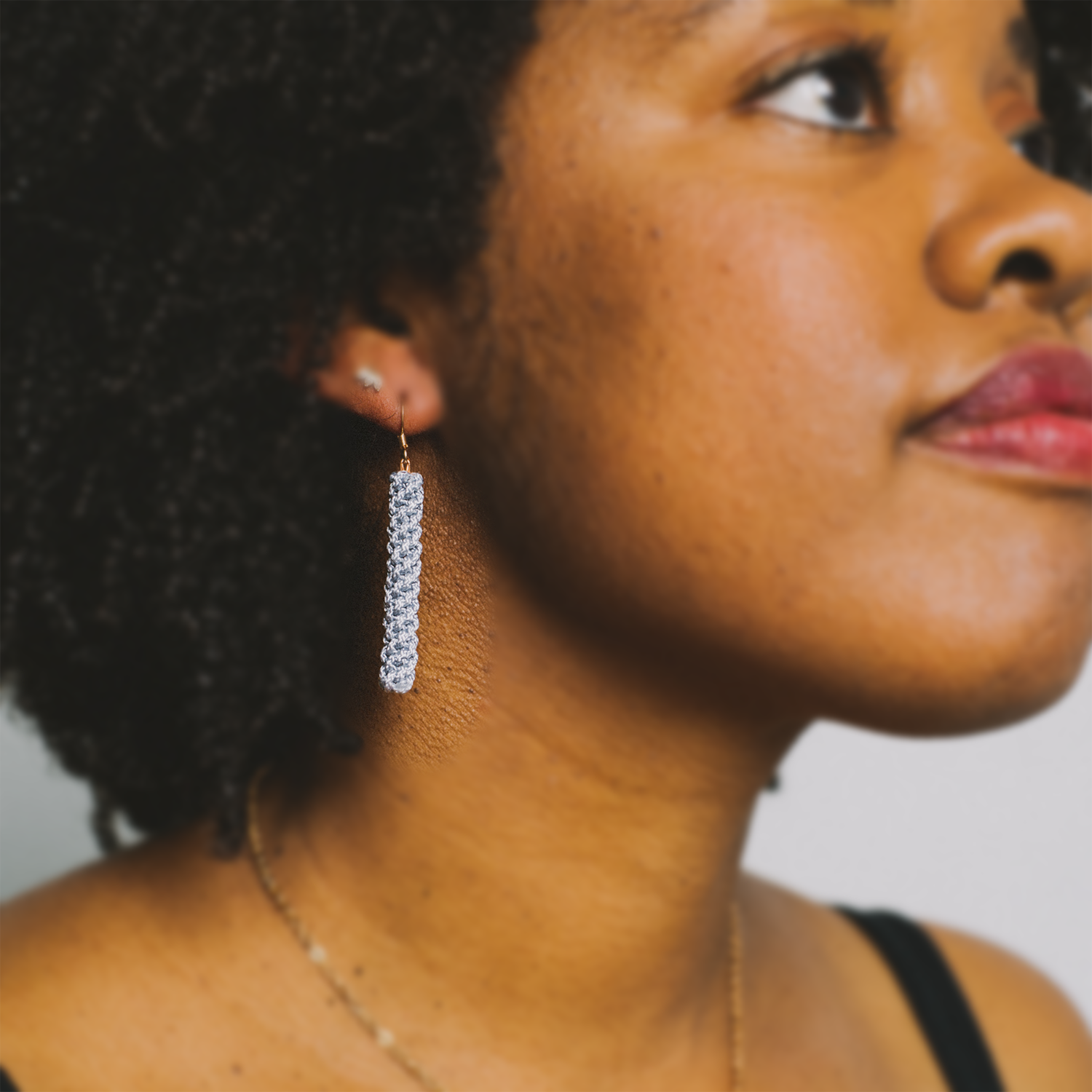 The Bar of Courage handmade knotted earrings serve as a reminder that our worth is not measured by our successes and failures but instead by our moments of courage. It is a privilege to stand by our incredible staff of survivors as they courageously press forward toward a brighter future.