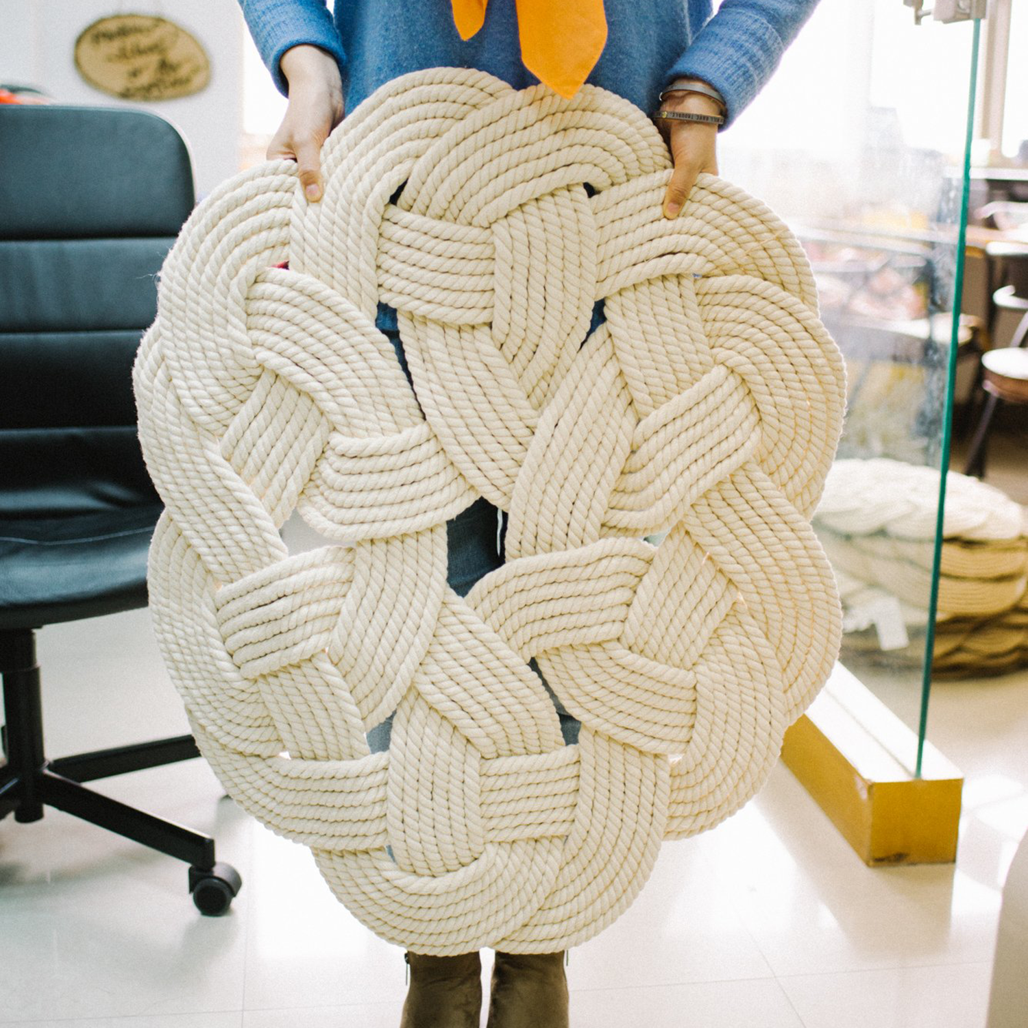 This beautiful knotted rug is truly a masterpiece made from a single strand of cotton rope and feels fabulous under your feet!