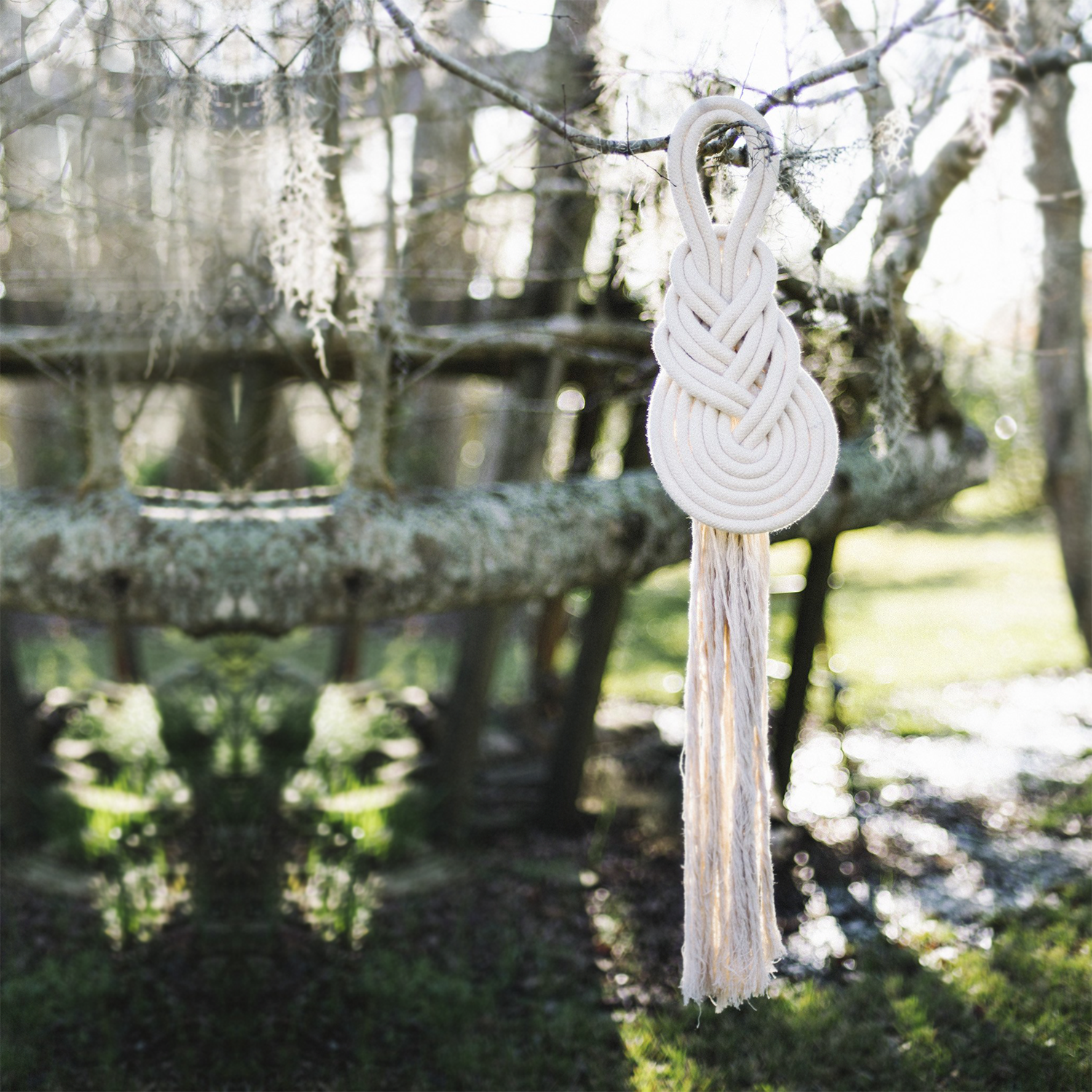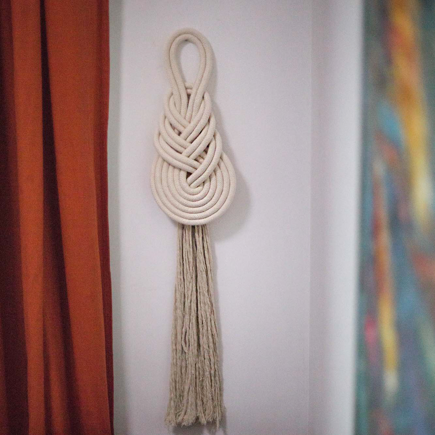 The Pippa Wall Hanging is hand-knotted with a 20x12" pippa knot and a 2' tassel. This unique piece is a stunning addition to any wall!